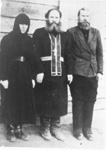 25. Иеромонах Михаил, в миру Михаил Васильевич Ершов (справа в женской одежде). 1940-е годы.