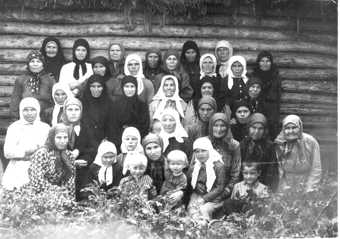128. Группа женщин с детьми из общины истинно-православных христиан на Святом ключе. Троица 1957 года.